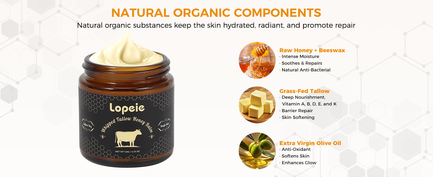 This Whipped Tallow Honey Balm is an excellent natural moisturizing balm for daily skin care. The texture is smooth, creamy, and easy to apply, absorbing quickly without leaving a greasy feel. It works perfectly as a natural skin moisturizer for dry and sensitive skin.