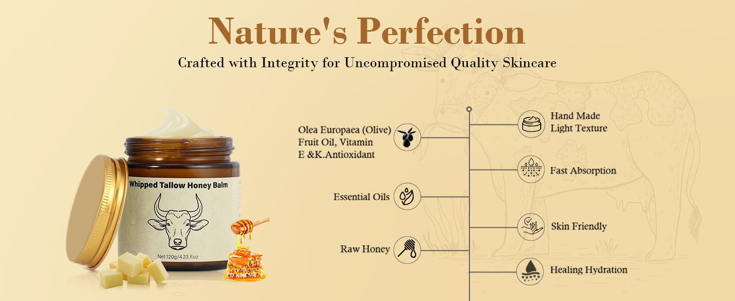 I purchased this Whipped Tallow Honey Balm from Lopeie and I absolutely love it. The whipped, butter-like texture melts easily with the warmth of my hands and absorbs much better than I expected, leaving my skin soft and comfortable.I use it on both my face and body, especially on dry areas, and my skin feels deeply hydrated, calm, and healthy-looking. It did not cause any irritation or burning, which I truly appreciate. The scent is delicate, natural, and not overpowering.A little goes a long way; even using it every night, I can tell it will last a long time. This truly feels like a product made with care and love for the skin.